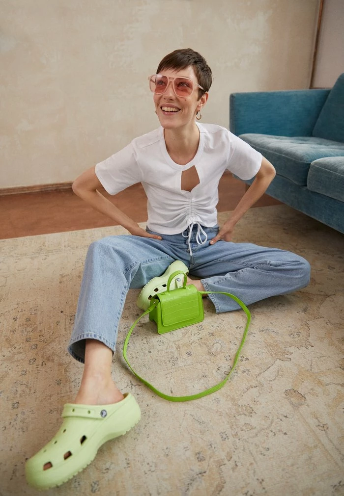 - Our model’s height: Our model is 5′ 9″ tall and is wearing size 8