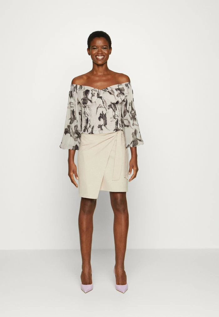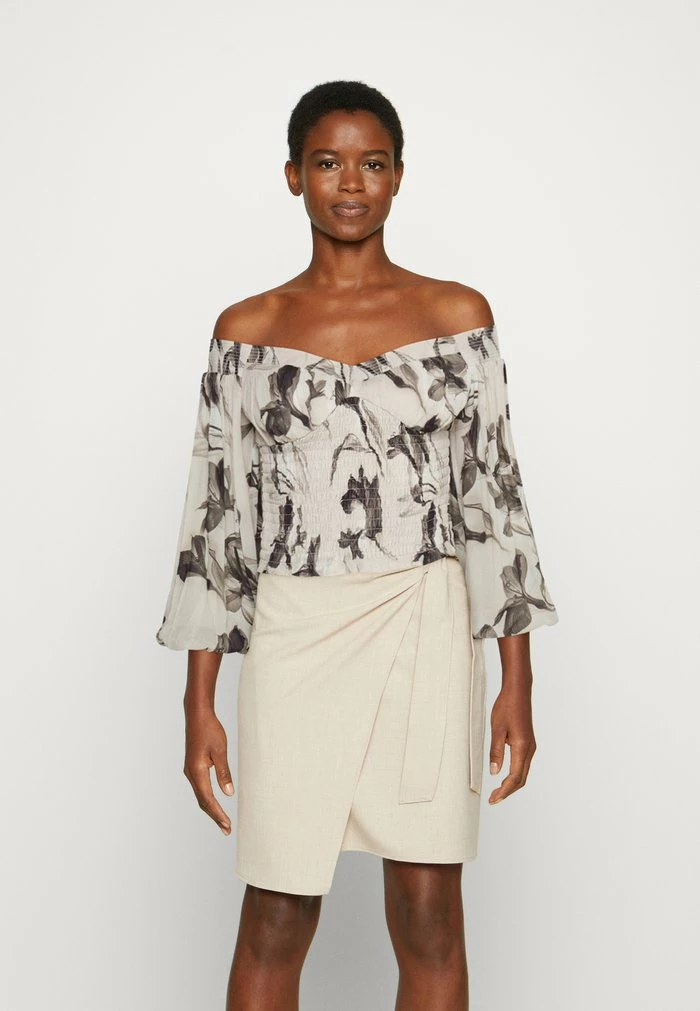 - Neckline: Off-the-shoulder